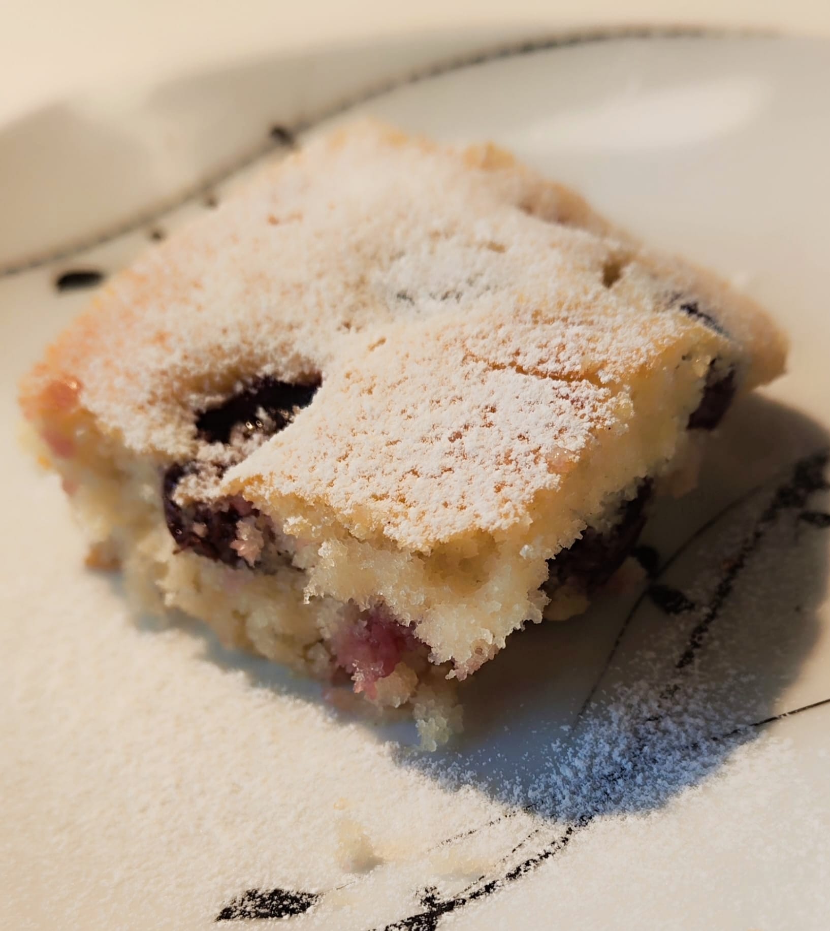 Ingredience: Postup: Rozehřejte máslo. Vložte ho do misky a ručním mixérem rozšlehejte s moučkovým a vanilínovým cukrem, vejci a kefírem. Pak přidejte prosátou mouku s práškem do pečiva a všechny suroviny řádně promíchejte. Pekáč o rozměrech 35 × 25 cm vyložte pečicím papírem, vlijte na něj těsto a rovnoměrně ho poklaďte vypeckovanými třešněmi.