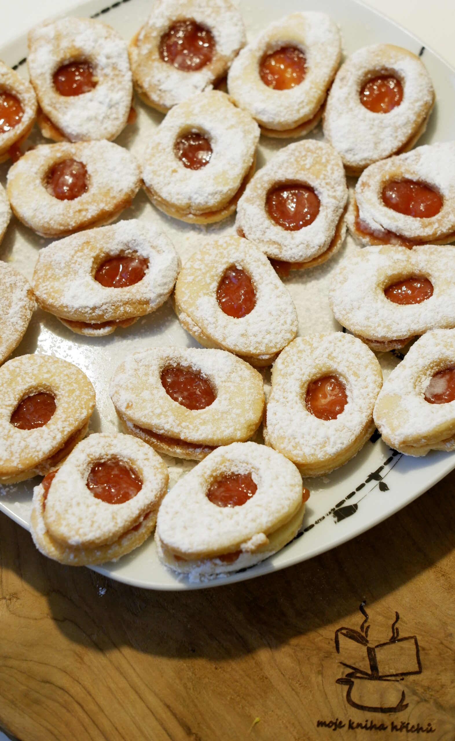 Ingredience: hladká mouka 210 g máslo 140 g cukr moučka 70 g žloutek 2 ks vanilkový cukr 1 ks citronová štáva 1 lžička cukr moučka na vyvalování těsta rybízová marmeláda na promazávání Máslo vyndáme z ledničky v předstihu, všechny suroviny musí mít