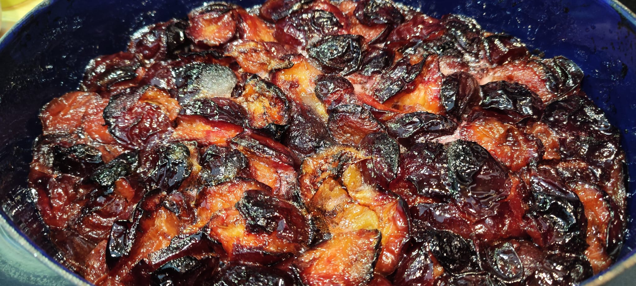 Ingredience: 2kg švestek 500g cukr krupice 2 PL ocet 1 lžička skořice 4 PL rumu 3ks hřebíček roztlučený Postup: Švestky umýt,odpeckovat a dát do hlubokého pekáče. Polijeme octem, vše promíchat a dát péct na 230st asi na 20-25min. Pak rovnoměrně posypat cukrem
