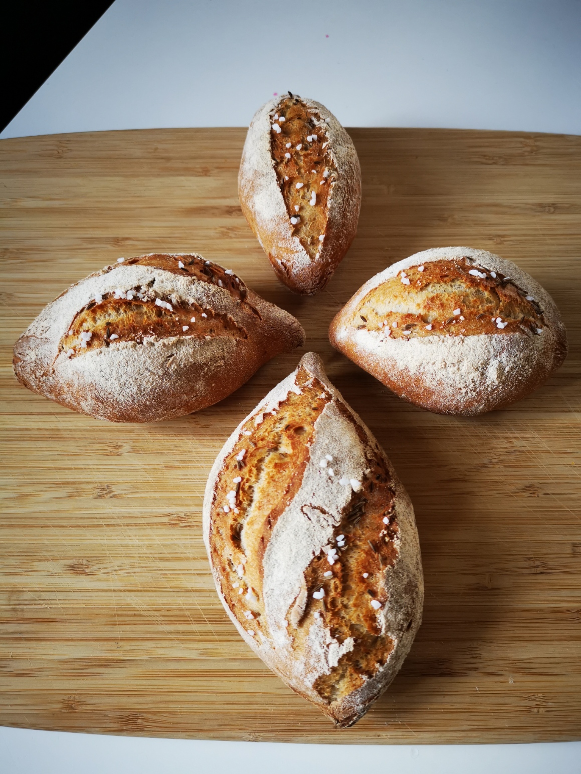 400 g obnoveného žitného kvasu (tedy večer před pečením dokrmeného z 20 g kvasu, 200 g vody a 200 g mouky) – z chlebové žitné mouky bude chléb jemnější a světlejší než z celozrnné, ale i tu můžete použít250 g vlažné vody400 g hladké nebo chlebové pšeničné