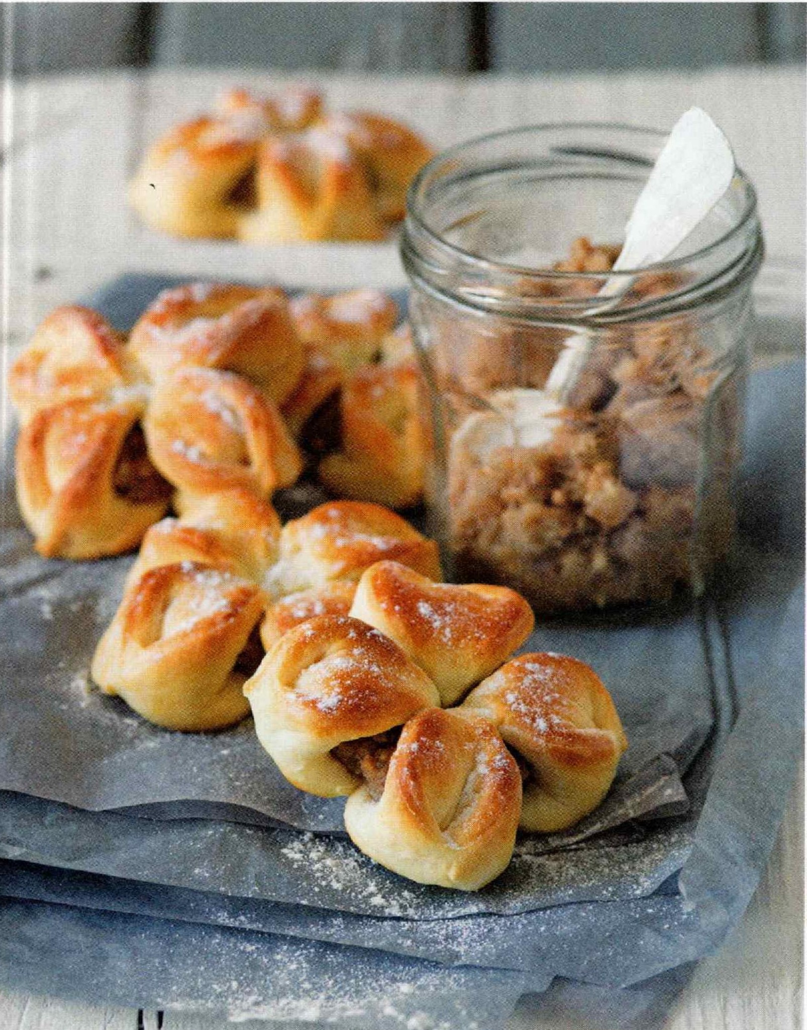 1, Malé čtverečky Těsto rozválejte dotenka, a vykrojte 4 čtverce 5×5 cm, aniž prokrojíte střed těsta. Lžící naneste náplň a přehněte roh každého čtverce do středu. 2, Tvarování rohů Středové rohy přeloženého těsta přitlačte k sobě. Ujistěte se, že dobře drží u