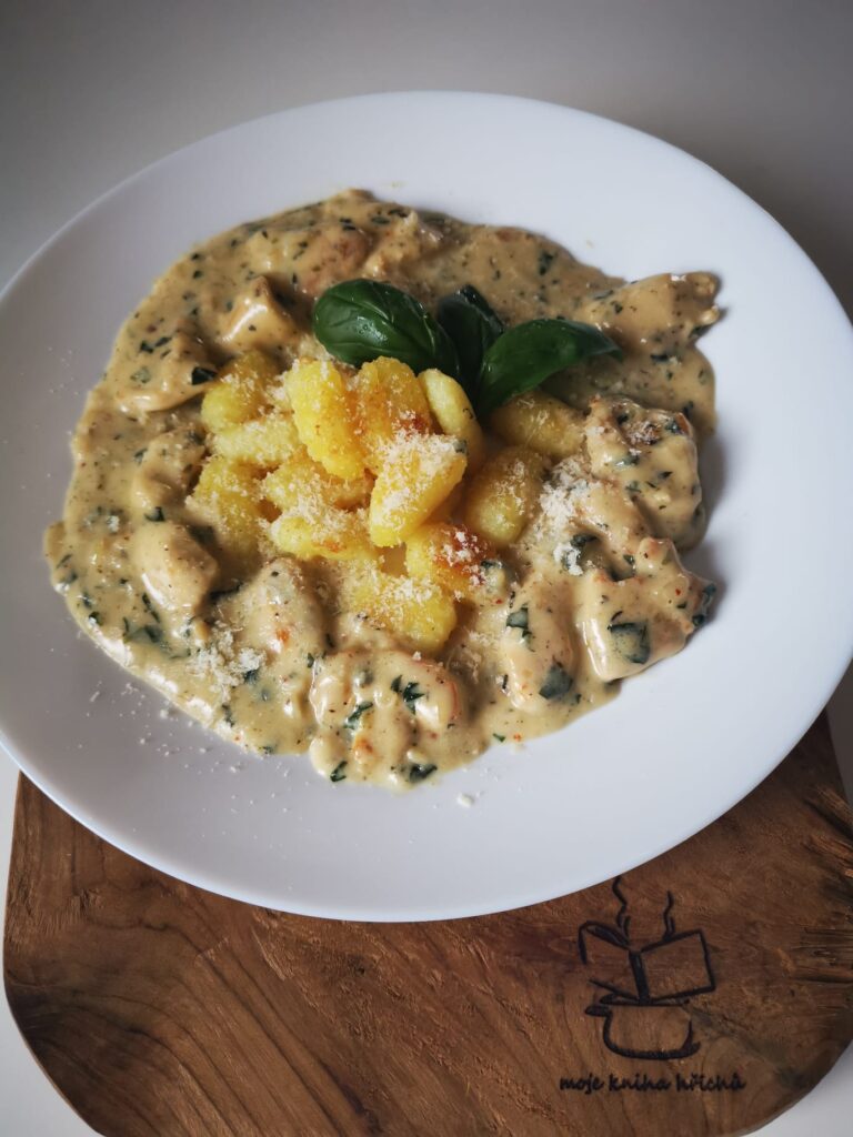 Kuře s opečenými gnocchi a bazalkovou omáčkou