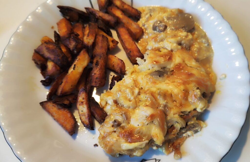 - Podávej s přílohou podle chuti – skvěle se hodí brambory (pečené, bramborová kaše), rýže, nebo čerstvý salát.