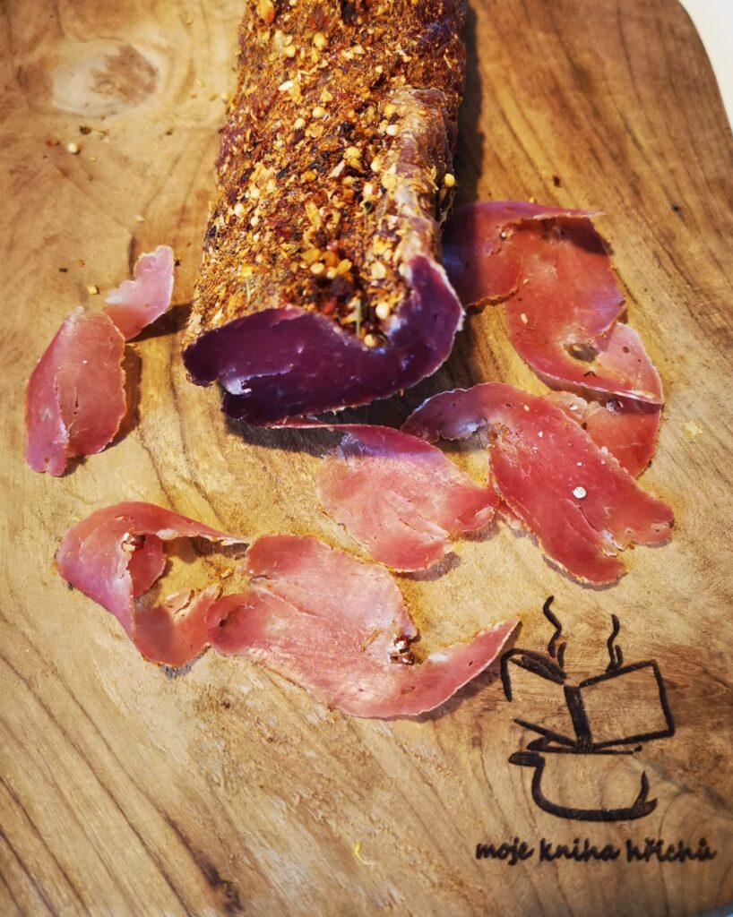 Vepřovou panenku očistit od blan, co nejlépe. Dále vytvořit směs cukr krupice vs. Praganda (leze nahradit jen solím ale nutná po umytí bude potřeba komplentě otřít silným alkoholem pro desinfekci, Praganda toto vyřeší přímo) poměr 1:1 a panenku obalit v této směsi a kompletně zasypat. Uležet na 1-2 dny do lednice, panenka pustí cca 50% vody.