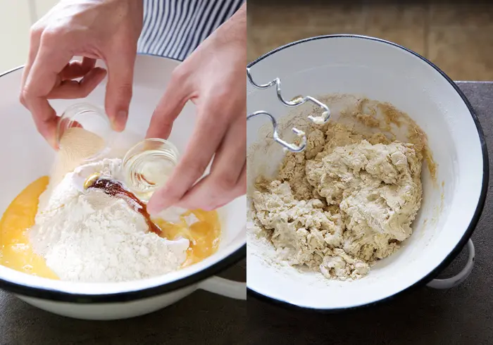 Krok 1: Nejprve vajíčko rozkvedlejte vidličkou (ideálně by vyklepnuté mělo vážit okolo 45 g). Do mísy nasypte mouku, přidejte tekutý slad, sušené kvasnice, vejce, olej a vodu a těsto hnětačem asi minutu propracovávejte, dokud nevytvoří kompaktní hmotu. Vyplatí se ho teď asi na 10 minut nechat odpočívat, abyste aktivovali lepek.