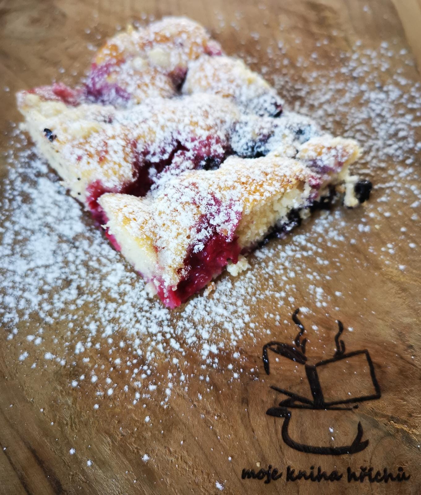 Ingredience: 4 vejce 250g smetany ke šlehání ( aspoň 33%) 200g cukr krupice 250g hladké mouky 1x prášek do pečiva 500g ovoce ( nejlépe maliny, borůvky, višně) Drobenka: 75g cukru krupice 50g máslo 75g hladké mouky troška soli V míse smícháme všechny suché